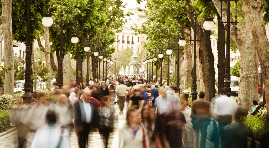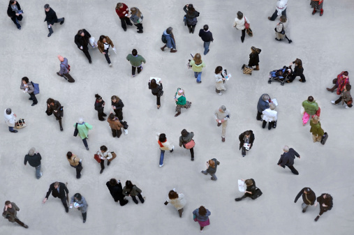 Shot of many pedestrians from above.